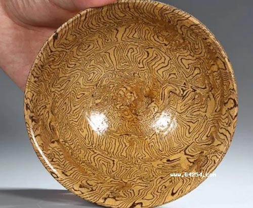 當(dāng)陽峪瓷器中最負(fù)盛名者,要算絞胎透花瓷。絞胎者,是說它在加工造型時,就將不同質(zhì)地、不同色彩的瓷泥按一定圖案規(guī)定絞合成型,使成品自然地呈現(xiàn)出色彩艷麗、線條分明的各種圖案,而不須靠釉色涂抹勾畫。
