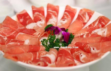 - 切制羊肉要求薄如紙,勻如晶,齊如線,美如花,羊肉片要長17至20厘米,寬3至6厘米