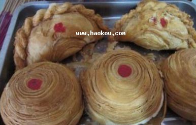 - 是關(guān)中獨(dú)特的風(fēng)味小吃。制作時(shí)先把面發(fā)酵好,搟成一個(gè)大蒲團(tuán)形狀,放在鍋里先用大火上色,后用溫火慢慢烤�?臼旌蠖顺鰜�(lái),象一
