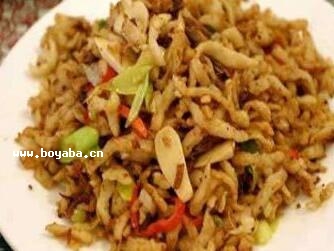 - 又名“洋芋不拉”、“洋芋庫(kù)勒”,洋芋就是土豆。洋芋擦擦取洋芋若干,用擦子擦成寸長(zhǎng)的薄片兒,拌入花椒、蔥絲、姜粉、鹽未等,同