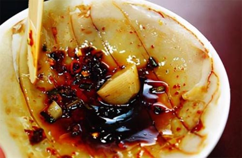 辣油碗托是傳統(tǒng)風(fēng)味小吃,用蕎面采用多道工序制作而成。加入辣油、芝麻醬等一起食用,味道醇厚,口感豐富,讓人食欲大增,越吃越是滋味。